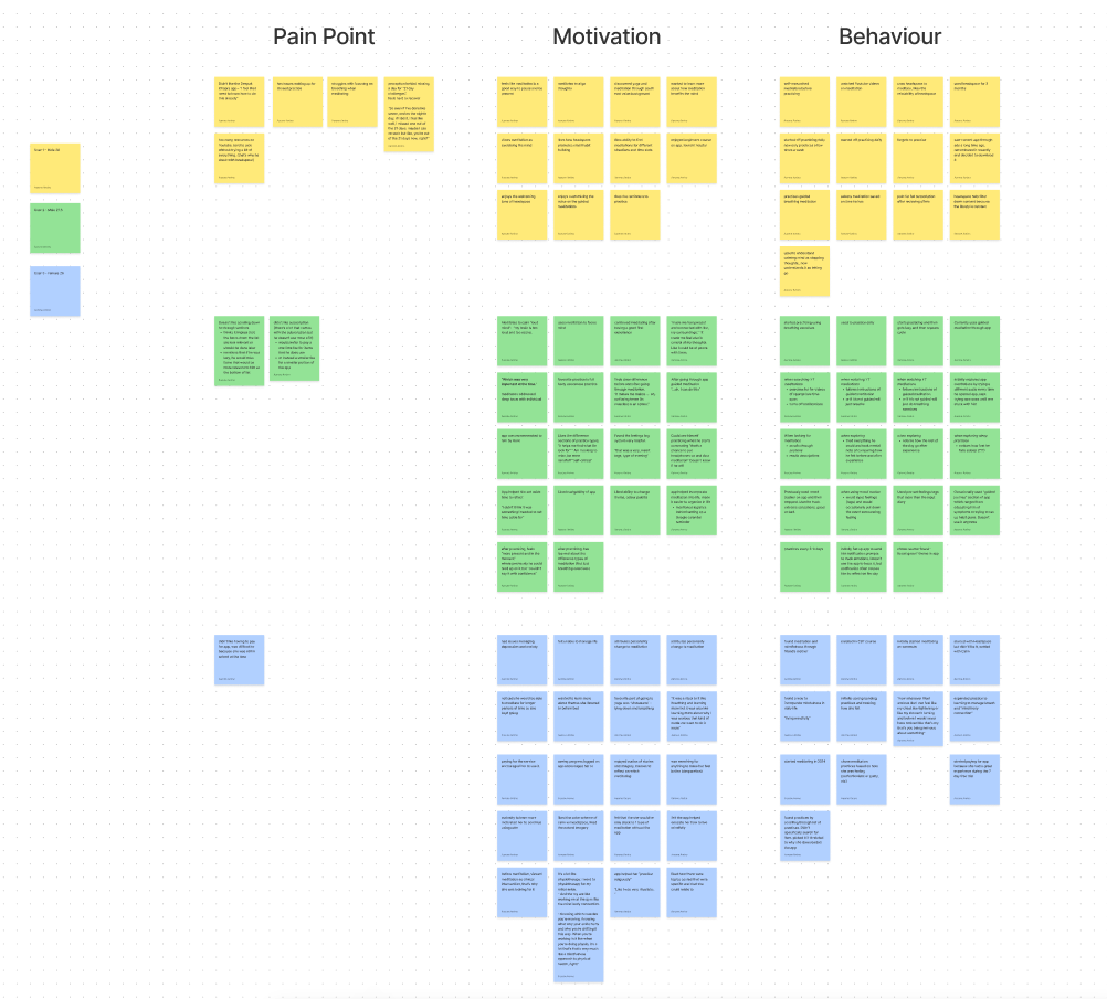 Affinity maps were created to distill the notes of each interview and derive themes and key insights.